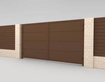 Для распашных ворот, помимо сэндвич-панелей, есть возможность изготовить заполнение из любых материалов: металлического штакетника, сетки, деревянных досок и других.